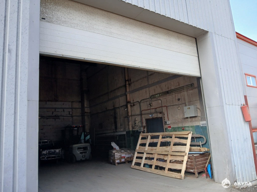 Помещение имеет удобную прямоугольную форму (67 метров в длину и 13 в ширину) и высокие 8-метровые потолки. Для погрузочных работ предусмотрены двое ворот: одни оборудованы пандусом для удобной разгрузки фур вровень с полом, другие — наземные. Полы выполнены с антипылевым покрытием, что важно для содержания чистоты на складе или производстве.
