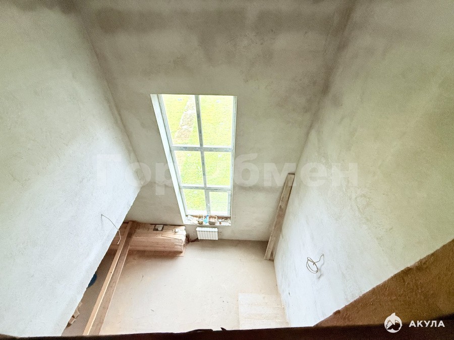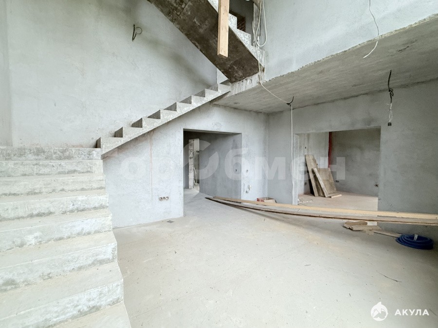 Дом частично утеплен, выровнены полы, стены, установлена железобетонная лестница.