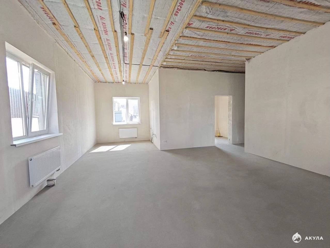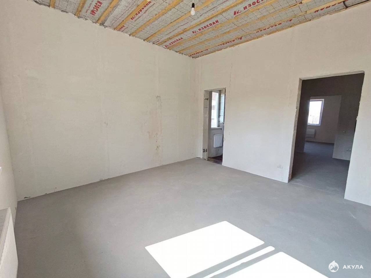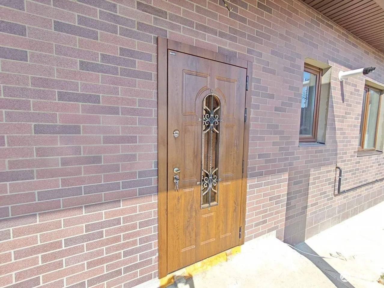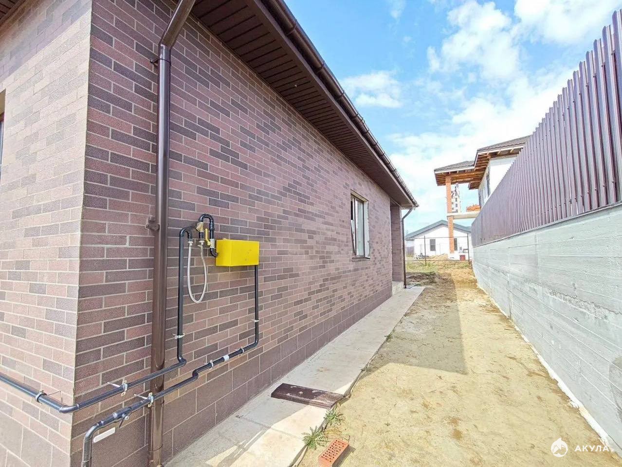 Дом построен из газосиликатных блоков с облицовкой клинкерным кирпичом, кровля — мягкая черепица. Выполнена отделка white box: тёплые водяные полы, стяжка, все коммуникации подключены, установлен газовый котёл. Пространство полностью готово к финишной отделке по вашему вкусу.
