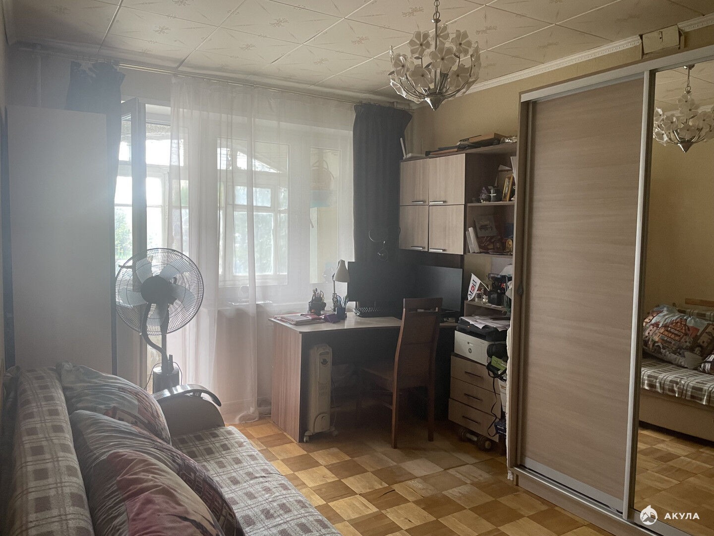 Общая площадь квартиры без учета большой застекленной лоджии 33, 7 кв.м, комната 17, 1 кв.м, кухня 8, 3 кв.м, сан.узел раздельный. В квартире окна ПВХ, двери – массив, лоджия застеклена. Квартира на солнечной стороне, сухая, этаж высокий. Окна выходят во двор. Подъезд чистый.