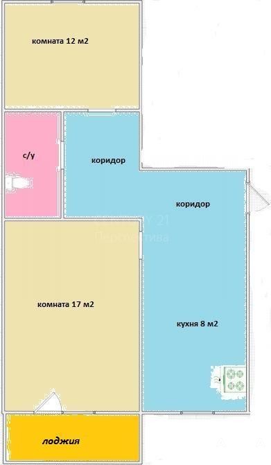 - общая площадь 54 м2, жилая площадь 29, 1 м2 (комнаты 17 м2 и 12 м2), кухня 8 м2.