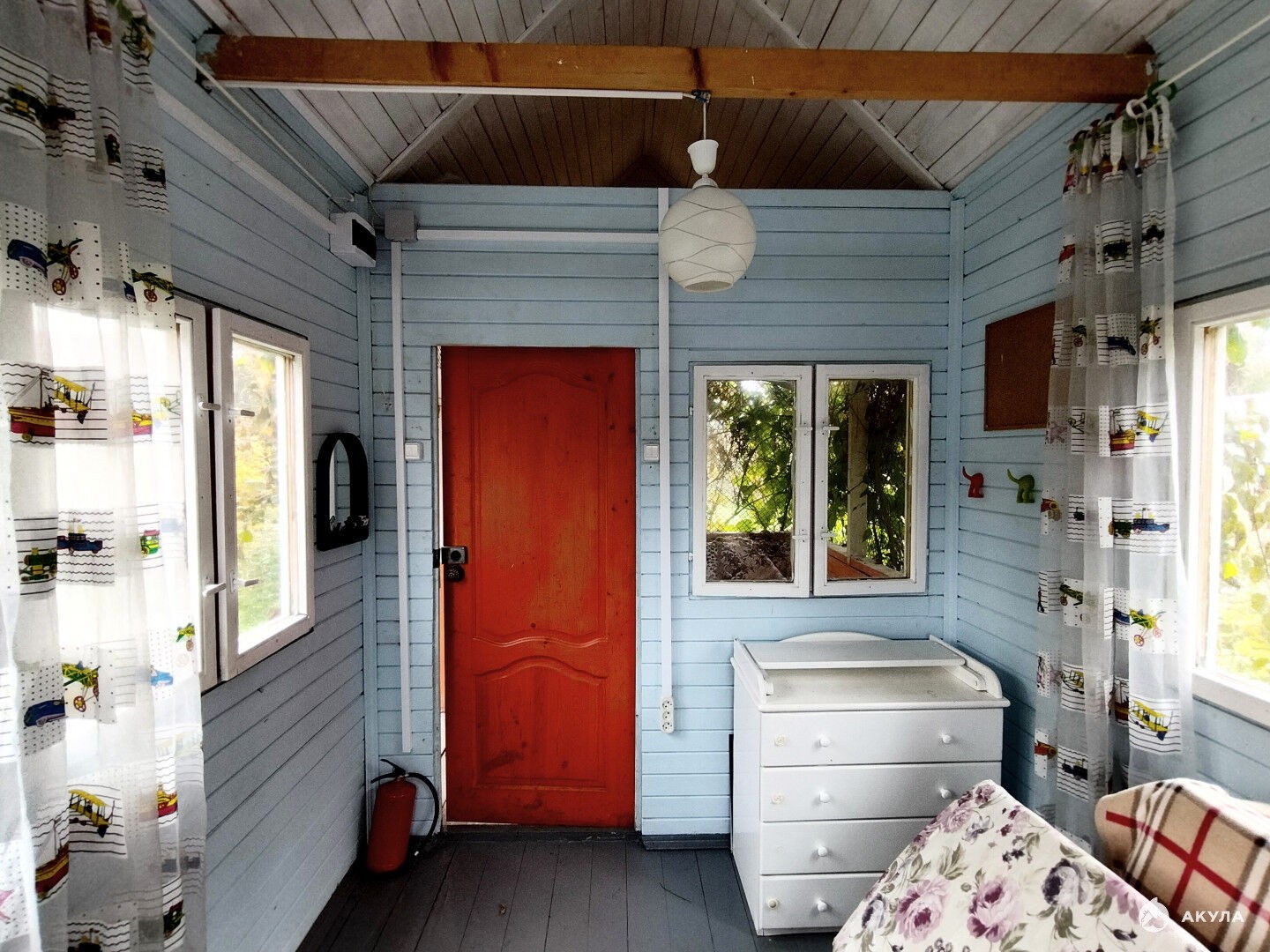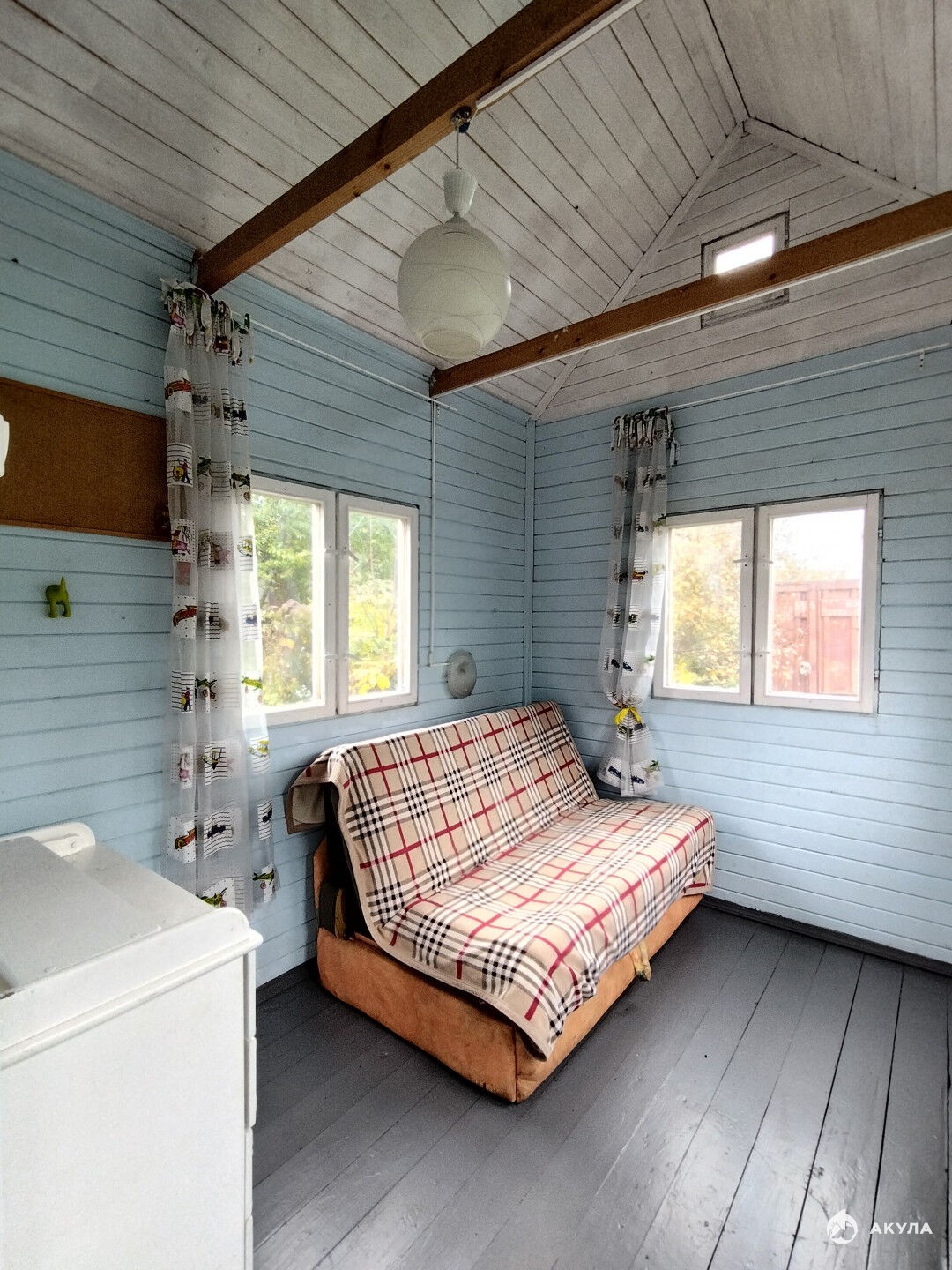 Для отдыха в тени рябины и жимолости, расположены качели, а на террасе домика, увитой актинидией, можно выпить чаю со свежей малиной. Взрослые яблони, слива, алыча обязательно порадуют вас урожаем.