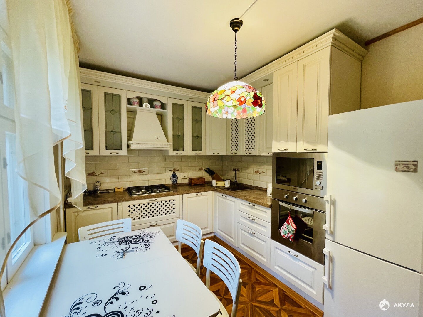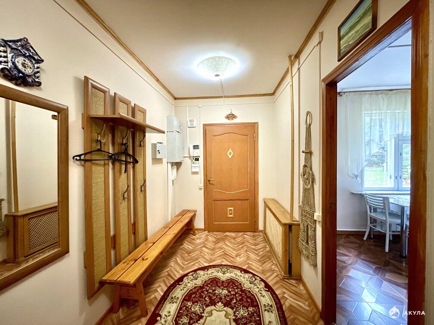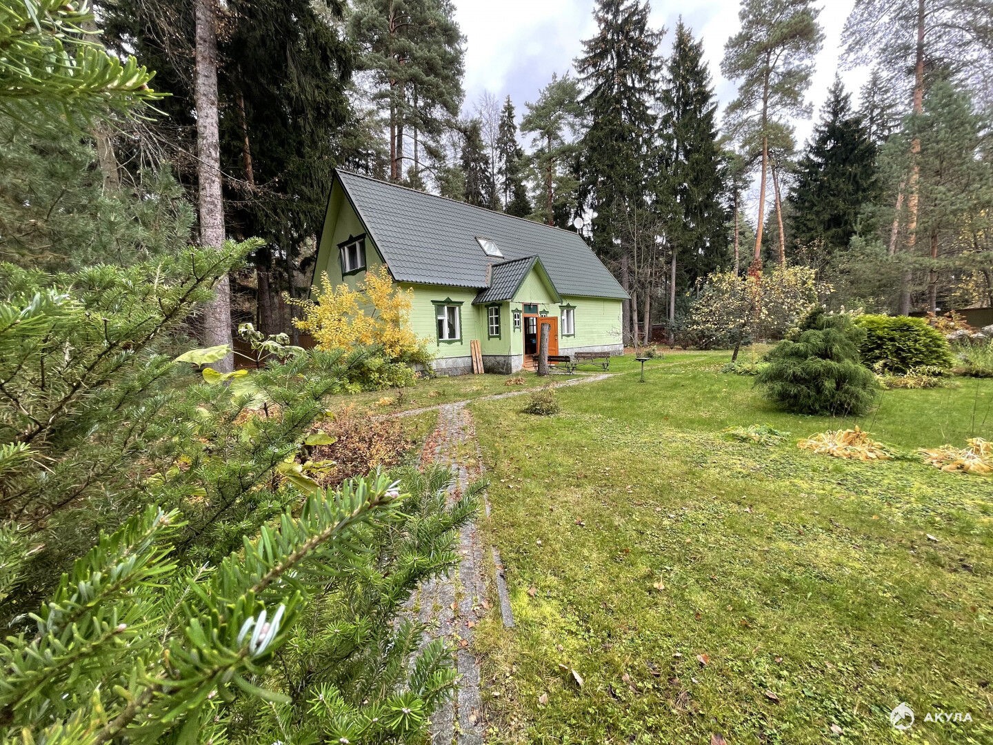 На просторном, ухоженном участке расположен дом с баней и купелью. В нём есть большая комната отдыха, дополнительная кухня и столовая зона. На втором этаже — две изолированные спальни.