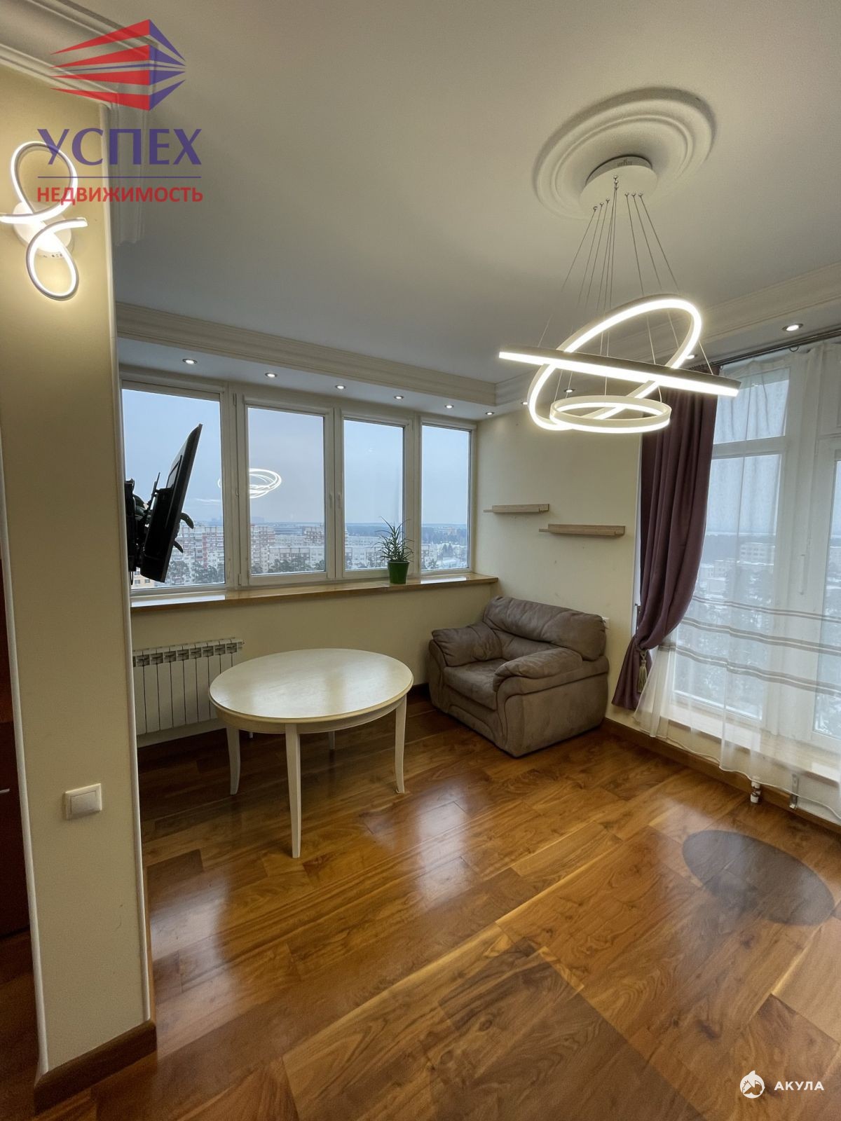 Общая площадь 100 кв.м. на 15 этаже 18-этажного монолитно-кирпичного дома.
